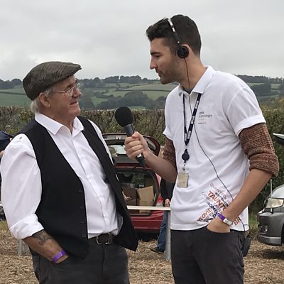 Charlie speaks to Jim, who's part of a team which helps keep a steam plough running.