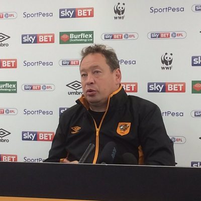 Hull City Head Coach Leonid Slutsky talks to David Burns post match.