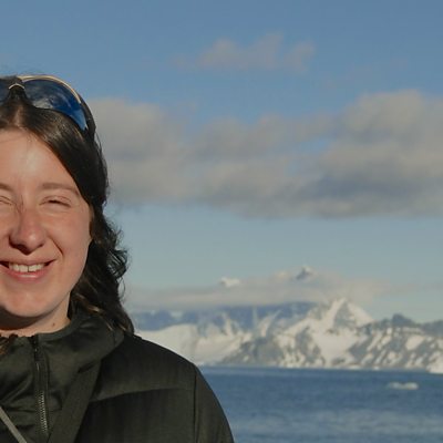 Jess Mead Silvester yn trafod ei gwaith yn Antartica.
