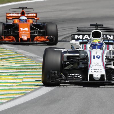 Williams' Felipe Massa holds off McLaren's Fernando Alonso to finish seventh in his final home race. This clip ir originally from 5 live Formula 1 on Sunday, 12 November 2017.