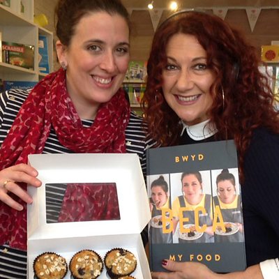 Shân yn cael cwmni Beca Lyne Pirkis yn Siop y Felin, Yr Eglwys Newydd.