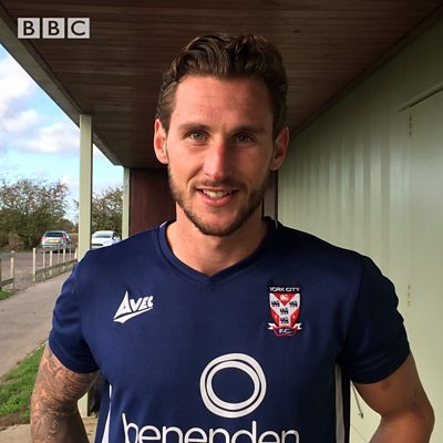 Goalscorer Gary Martin reacts to York City's 3 - 1 win over Coalville in the FA Trophy