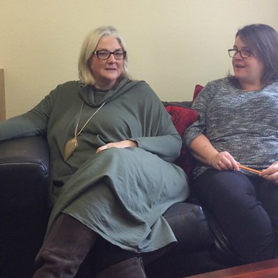 Sian a Lorraine rheolwyr Cartref Plas Pengwaith.