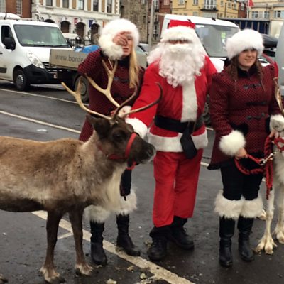 Red Funnel are used to carrying unusual cargo on their Southampton to Cowes route. But two reindeer are probably some of their most unusual. Tinsel and Snowflake were heading to Tapnell Farm in Yarmouth to bring some Christmas cheer for the children on the Isle of Wight. Santa even took time out from wrapping presents to pet them as they waited for the ferry to arrive. BBC Radio Solent's Neil Sackley went along to meet them.