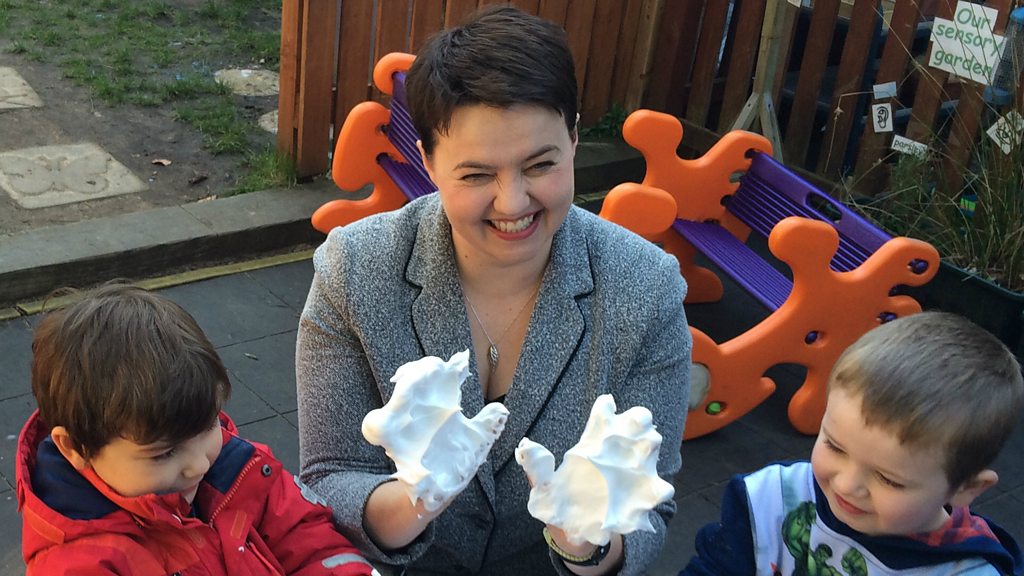Ruth Davidson is the Radio 4 Broadcasting House politician of the year. Paddy O'Connell suggested to the Scottish Conservative leader that she and Arlene Foster of the DUP might now be Theresa May's Cagney & Lacey. But he gets short shrift. "I'm not really sure that a 1980s buddy cop show from New York really explains quite a serious time in government," Ms Davidson told him. "I'm not sure I take the analogy actually. I would reject that." The full interview will be on Radio 4's Broadcasting House on Christmas Eve at 9am. (Photo: Ruth Davidson at a nursery, Credit: BBC)