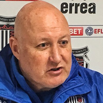 Grimsby Town boss Russell Slade chats with Simon Clark before facing Newport.