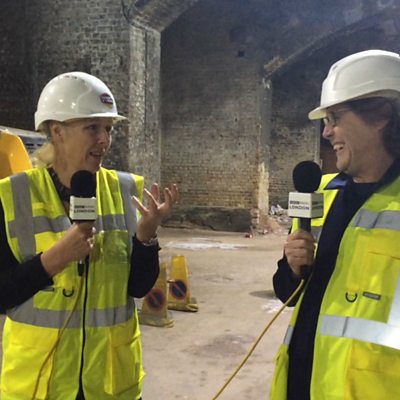 Director of the Museum of London, Sharon Ament, shows Robert around their new site.