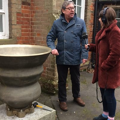 At the treasure location, Anna Perrott hears about the Happisburgh Time and Tide Bell.