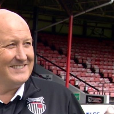 Russell Slade talking to John Tondeur after a 1-1 draw at Colchester United in League Two.
