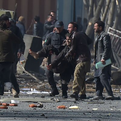 A Taliban suicide bomber has killed more than ninety people in the Afghan capital, Kabul, using an ambulance packed with explosives. Mirwais Yasini, an Afghan member of parliament, describes the scene of the blast that happened just metres from his house. (Image: Afghan volunteers and policemen help wounded at the scene of the car bomb in Kabul. Credit: AFP PHOTO/Getty Images/Wakil Kohsar)