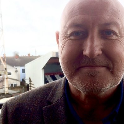 Russell Slade talking to John Tondeur after a 3-0 defeat at Crawley in League Two.
