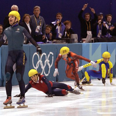 In 2002, speed skater Steven Bradbury became Australia's first Winter Olympic champion, in one of the most extraordinary races ever seen at any Games. He survived a late wipe out in which three of his competitors fell, allowing him to clinch victory against all the odds. (Photo credit: Steve Munday/Getty Images.)