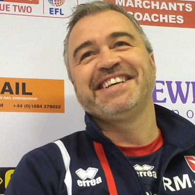 Cheltenham assistant Russell Milton following his side's 3-0 win away at Swindon