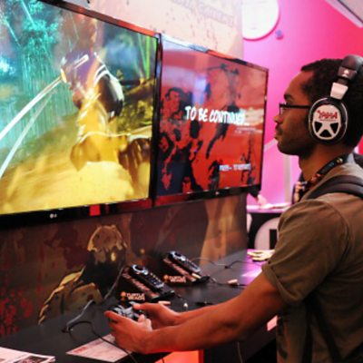 Twitch is the world's leading video platform and community for gamers. It's where gamers from all over the world can watch or play against complete strangers. Rappers Drake and Travis Scott teamed up with NFL player JuJu Smith-Schuster and professional gamer, Ninja to livestream them playing a game called 'Fortnite'. More than 600,000 people tuned in on Twitch - that's the most number of people watching an individual live-stream on the platform. Jordan Erica Webber is a gaming correspondent. She talks us through Twitch. (Photo: Gamer at the Electronic Entertainment Expo in Los Angeles, 2013. ROBYN BECK/AFP/Getty Images)