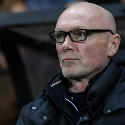 Port Vale boss Neil Aspin speaks to Lee Blakeman following a 1-0 defeat to Exeter.