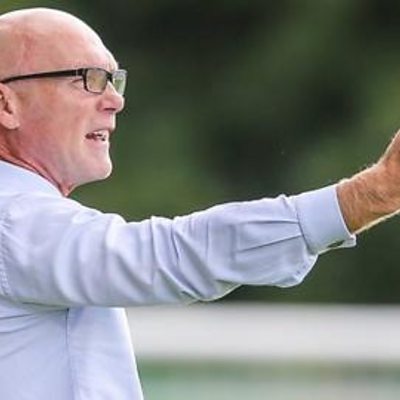 Port Vale manager Neil Aspin speaks to Lee Blakeman after a 2-1 defeat to Crawley Town.
