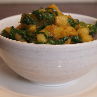 Sarah Ali Choudhury talks Rebecca through making an authentic Sag Aloo.