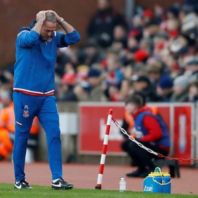Stoke City manager Paul Lambert speaks to Nigel Johnson after a 1-1 draw with Burnley.