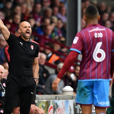 Rotherham United manager Paul Warne after the first leg of their play-off semi final.