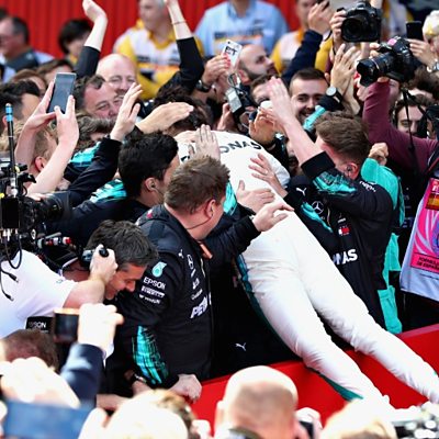 Lewis Hamilton congratulates his Mercedes colleagues over team radio following one of his most dominant race victories. The four-time world champion crossed the line in Barcelona 20 seconds clear of the rest of the field. This clip is from 5 live Formula 1 on Sunday 13th May.