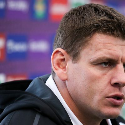 Lee Radford talks to Richard Stead after a defeat at Warrington Wolves.