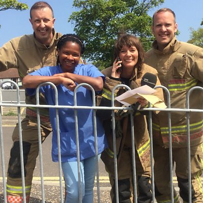 Julie Reinger accidentally gives passerby Jenny a soaking in Cromer - fortunately she didn't get cross!