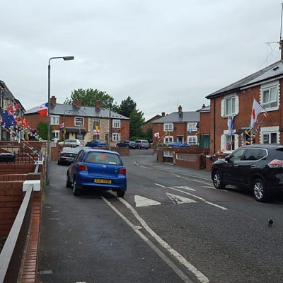 Football fans in Whiterock Gardens in West Belfast have put the flags out for the world cup- with each house flying the flag of a competing nation.