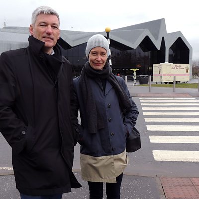 Gilleasbuig MacDhòmhnaill a' còmhradh ri daoine le an taghadh de dh'ailtearachd Ghlaschu.