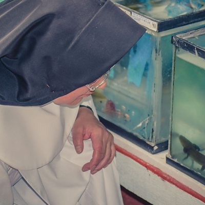The Sisters of Immaculate Health are expert breeders of the highly endangered Lake Patzcuaro axolotl or ‘achoque’. The nuns rear the creatures in their convent in the Mexican town of Patzcuaro, where they use some of them to make a traditional Mexican remedy for lung conditions. However, collaborating with conservation scientists, their skills at breeding achoques may ensure the survival of the species in its one natural home in Lake Patzcuaro. Victoria Gill tours the convent’s salamander farm and speaks to Sister Ofelia and Sister Sophana, along with biologists Gerado Garcia and Omar Dominguez. (Image: Sister Ofelia and two of the convent’s four hundred achoques, Credit: Will Condliffe, Chester Zoo.)