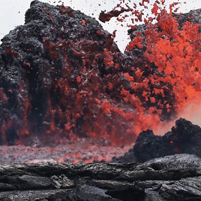 Volcanologist Jess Johnson records the seismic rumbles of the erupting Kilauea volcano in Hawaii in order to understand the stresses and strains moving magma is putting on the mountain. (Image: Lava erupts from a Kilauea volcano fissure in Leilani Estates, Hawaii, Credit: Mario Tama/Getty Images.)