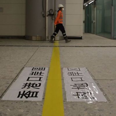 China has, for the first time, taken over jurisdiction of a part of Hong Kong - a section of a new high-speed rail terminal. The exchange happened in a secret, midnight ceremony which made the area subject to Chinese rather than Hong Kong law. Hong Kong-based journalist Mary Hui explains what's in it for both sides. (Photo: A worker walks past a line dividing Hong Kong (L) and the mainland Chinese control zone. Credit: Getty Images)