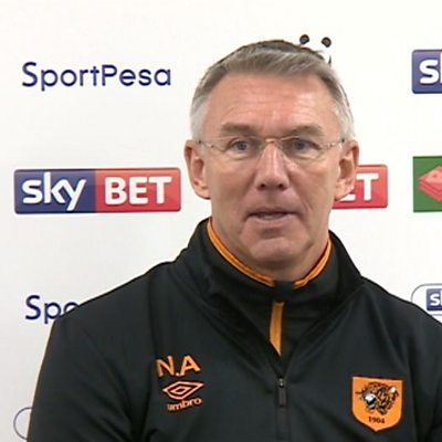 Hull City manager Nigel Adkins talks to David Burns after a defeat at Wigan.