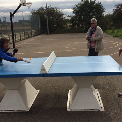 Earning a clue in East Rudham, Julie showed off some unusual skill with a ping-pong ball!