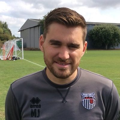 Grimsby Town boss Michael Jolley talks to John Tondeur ahead of Port Vale game