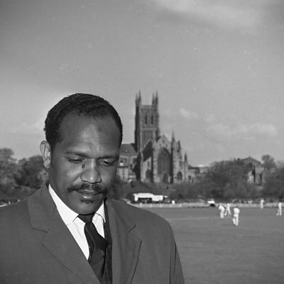 When to turn up, how to behave, and when to get the drinks in: Lenny Henry reads advice for West Indian migrants in Going to Britain?, a pamphlet produced by the BBC Caribbean Service in 1959. This is an excerpt from Windrush: Some Kind of Homecoming, a special edition of Words and Music exploring the experience of the Windrush generation through its poetry, prose and music. This edition is broadcast as part of Black History Month and inspired by the British Library's free exhibition Windrush: Songs in a Strange Land, which runs until 21 October. Pictured here is the St Lucia-born broadcaster Alva Clarke reporting from Worcestershire Cricket Club in 1963.