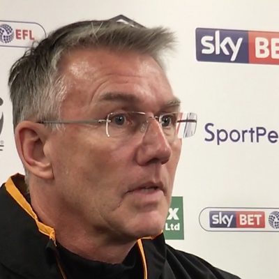 Nigel Adkins in conversation with David Burns after a 1 - 0 defeat to Bristol City.