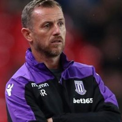 Stoke boss Gary Rowett speaks to Nigel Johnson after a 0-0 draw with Middlesbrough