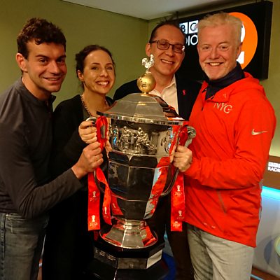 Chief Executive of Rugby League World Cup 2021 Jon Dutton pops in with the trophy.