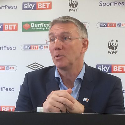 Nigel Adkins talks to David Burns after a win which moves them out of the relegation zone.