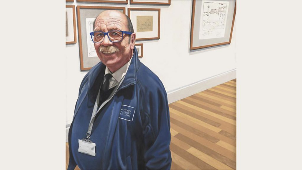 Janice speaks to National Galleries of Scotland staff member Laura Nardo to tell us about her painting, titled LTR Team A, which features her fellow Security and Visitor Services colleague Vittorio Milazzo. Image © Laura Nardo