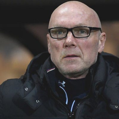 Neil Aspin speaks to Lee Blakeman following a 3-0 defeat to Colchester