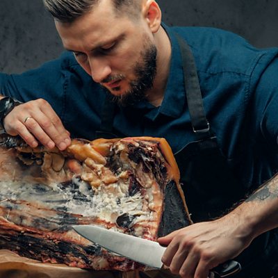 Brent Young is co-founder of The Meat Hook butcher's shop in Brooklyn, New York. He tells Emily Thomas why so many young people - often with high-flying well paid jobs - are drawn to butchery with its long hours and physical, bloody work. They are joined by Isioma Emina from Reds and Greens in Lagos. (Image: Trendy butcher slicing meat Image Credit: Getty Images)