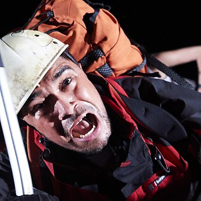 Written in 1988 before becoming a film in 2003, and now a stage adaptation, Touching the Void recounts the astonishing true story of Joe Simpson and Simon Yates’ near-fatal climb of the West Face of the Siula Grande in the Peruvian Andes. It was a feat that had previously been attempted but never achieved, and one that would nearly cost both climbers their lives. When Joe Simpson fell badly, breaking his leg, he and fellow climber Simon Yates found themselves roped together, neither able to move to safety, and both frozen by their formidable surroundings and their loyalty to one another. Faced with the impossible choice between cutting the rope and continuing the climb, or potentially perishing with his friend, Simon makes a decision that results in unimaginable consequences for them both. Image shows Josh Williams as Joe. © Geraint Lewis
