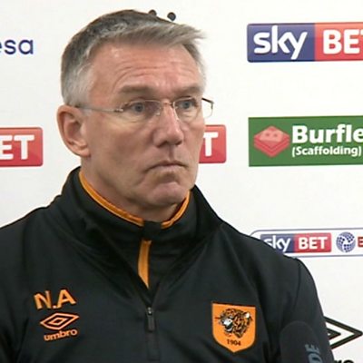 Nigel Adkins speaks to David Burns following their 2-0 win against Stoke.