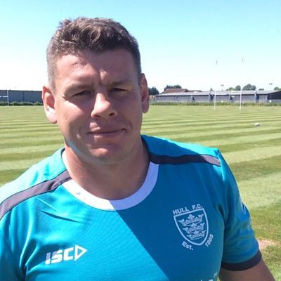Lee Radford talks to Richard Stead after a golden point win against Catalans Dragons.