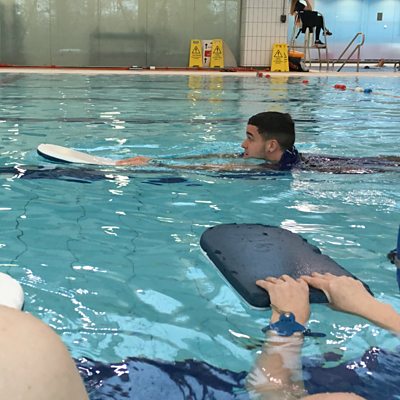 A group of adults talk about their experience of learning to swim for the first time.