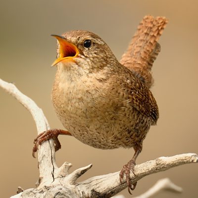 Birds live life in the fast lane, flying, often catching insects at speed, and communicating with each other using songs that can incorporate tens of notes per second. Wildlife sound recordist Chris Watson plays the song of a small garden bird, the wren, and slows it down to demonstrate how it might sound to the birds themselves. Can they hear more notes than we can in the same amount of time? Image: Eurasian Wren (Troglodytes troglodytes) Credit: Getty Images