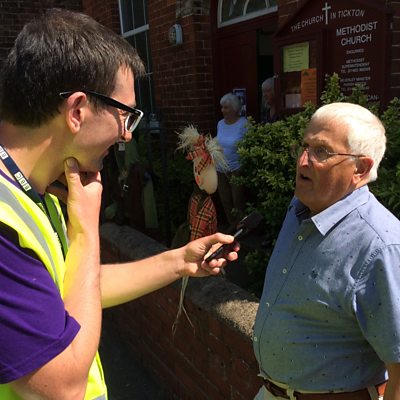 James investigates Tickton's scarecrows.