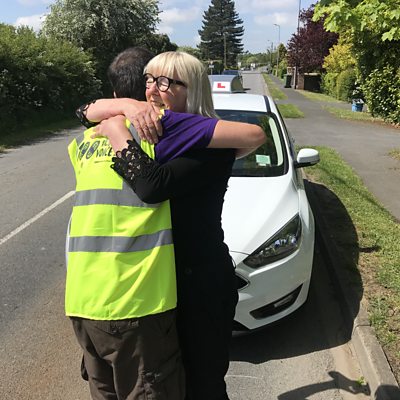 James gets a hug from Barbara the driving instructor near Greetwell.