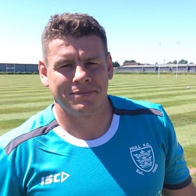 Lee Radford talks to Richard Stead after a win in the Challenge Cup quarter-final.